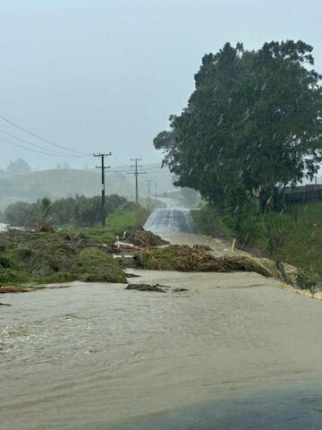 The most dramatic event occurred this morning, closing Taupo Bay Road at the intersection with State Highway 10 after a farm dam burst sending debris across the road. Crews are clearing the road.